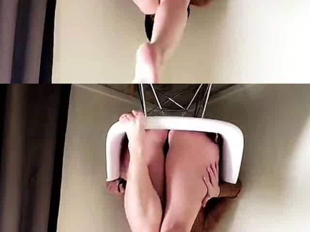 Flexible pale brunette with foot fetish does hot footjob
