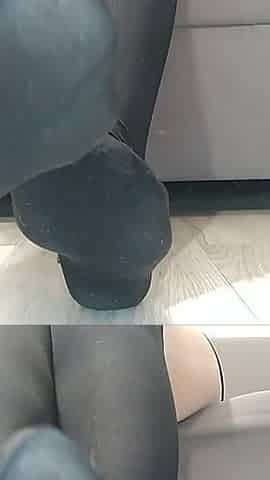 Nylon Pantyhose in Beautiful Footjob and Handjob with Cum on Black Nylon
