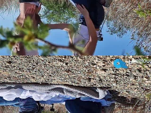 Fingering man ass outdoors. beauty inserts fingers into guy