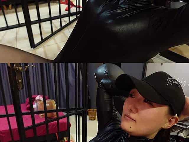 Latex body suit and a submission