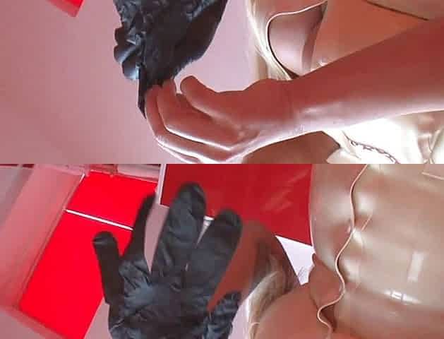 Latex femdom spanking poor slave and tormenting his dick