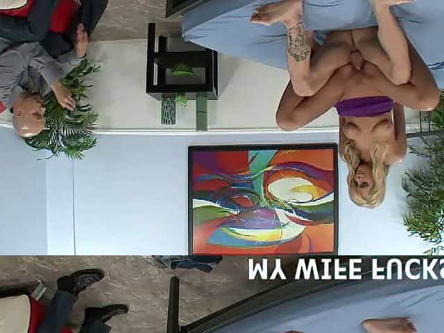 Femdom MILF pegs cuckold hubby while cuddles with another