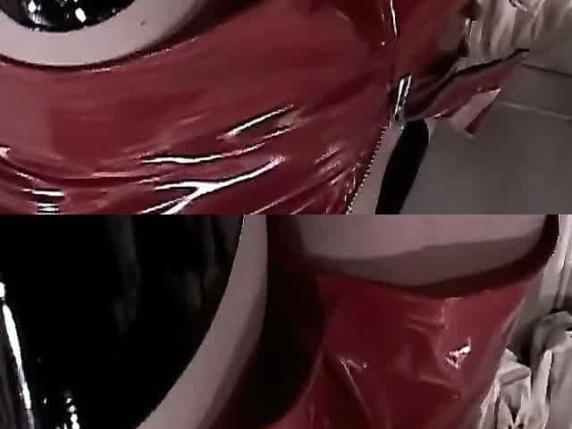 Latex mistress anally penetrates male slave