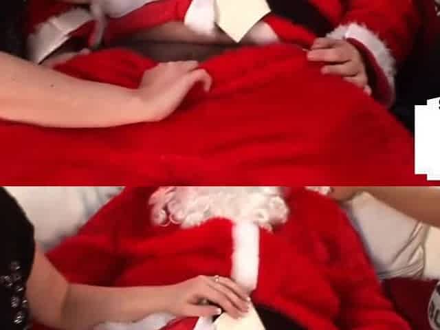 Bigboobed femdoms tugging santas micro penis