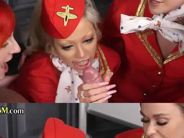 Femdom Stewardesses Suck In Cfnm Group
