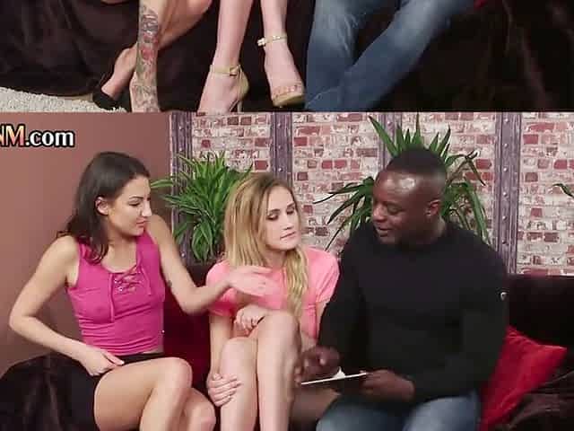 Naughty first-timer stunners in CFNM femdom give mind-blowing oral pleasure to lucky ebony stud