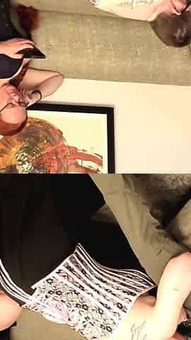 Femdom cuckold with interracial blowjob from brunette