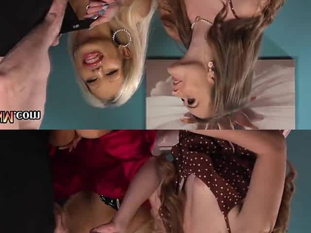 CFNM 21yo femdom gals suck and wank cock in threesome