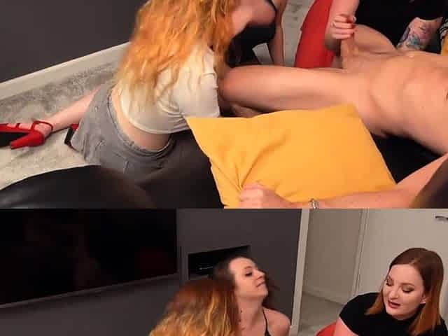CFNM IR group HJ by femdom babes