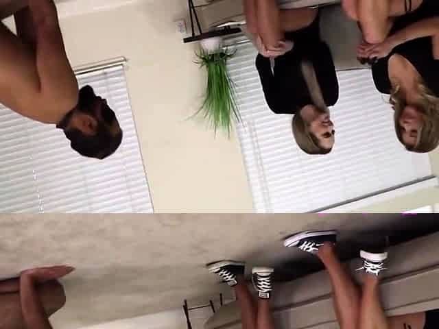Teasing nympho college CFNM sluts suck cock in threesome