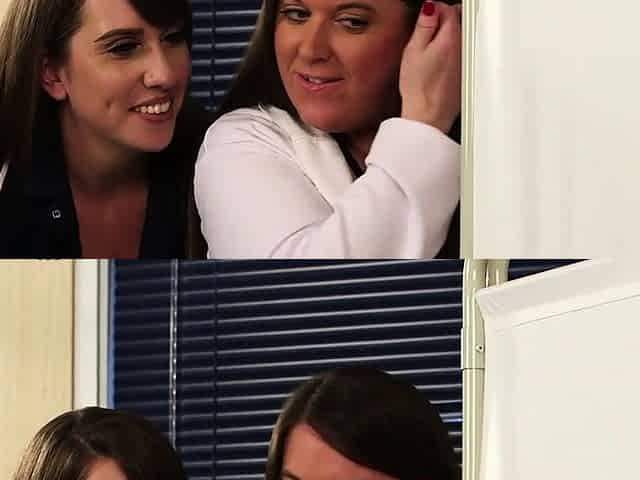 CFNM femdom secretaries give 3some BJ