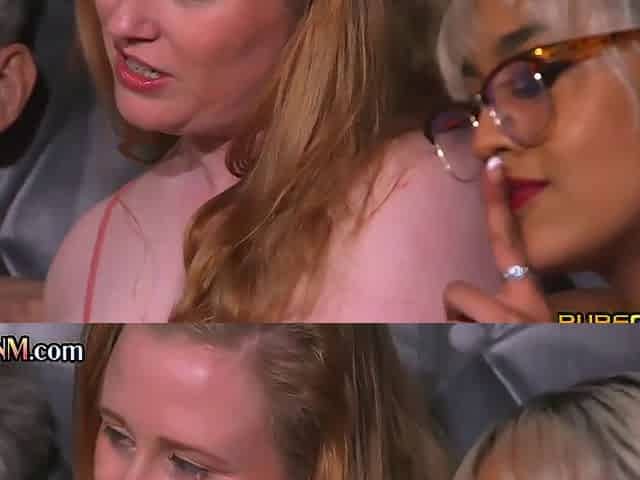 CFNM dominas grinding guy in group sess