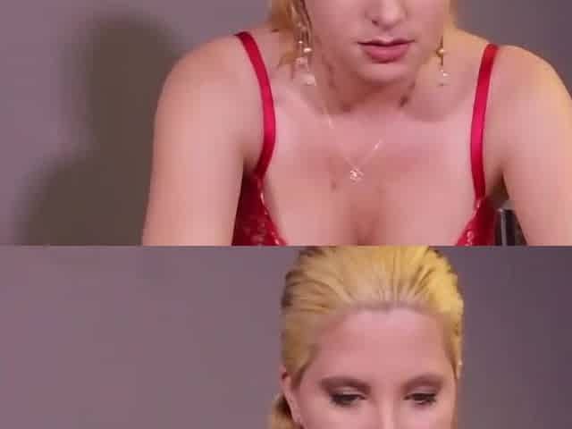 Femdom milking MILF in lingerie wanking table hole cock