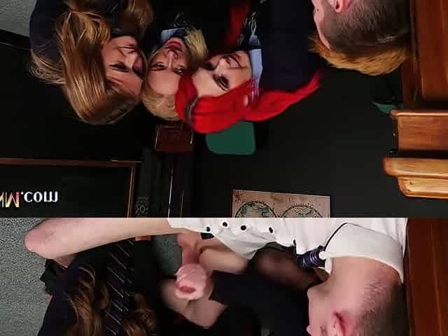 CFNM femdom hotties tugging in HJ fuckfest