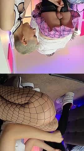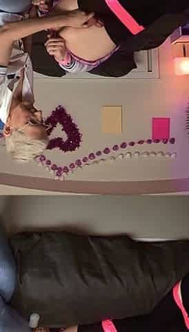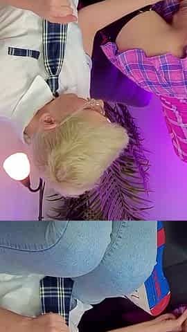 Girl and femboy femdom handjob
