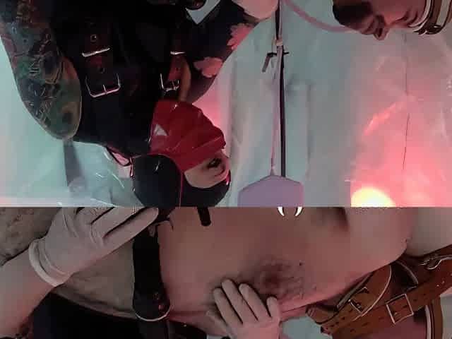 Femdom Bondage Slave In Humbler Gets Handjob Milking