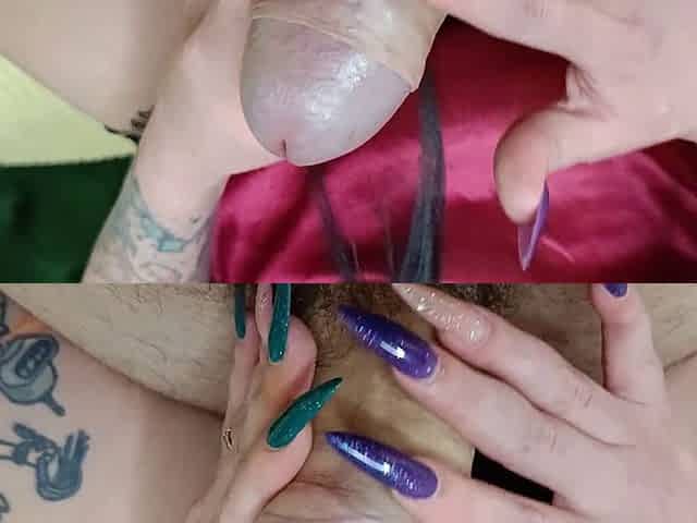 Mistress Nika indulges in nail fetish play on her victim's cock and breasts