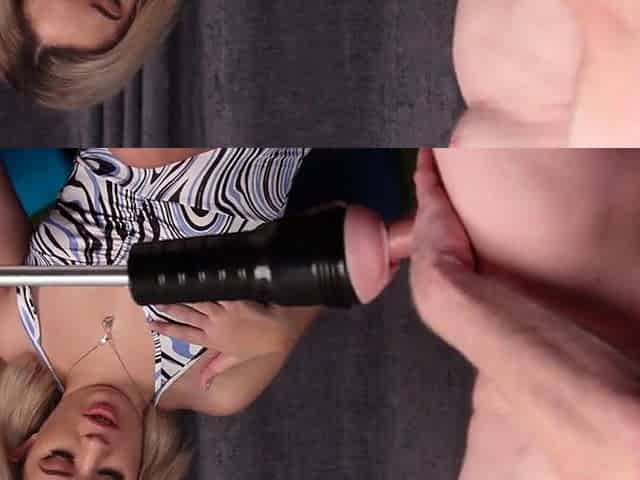 Voyeur CFNM babe teases man with sex toy