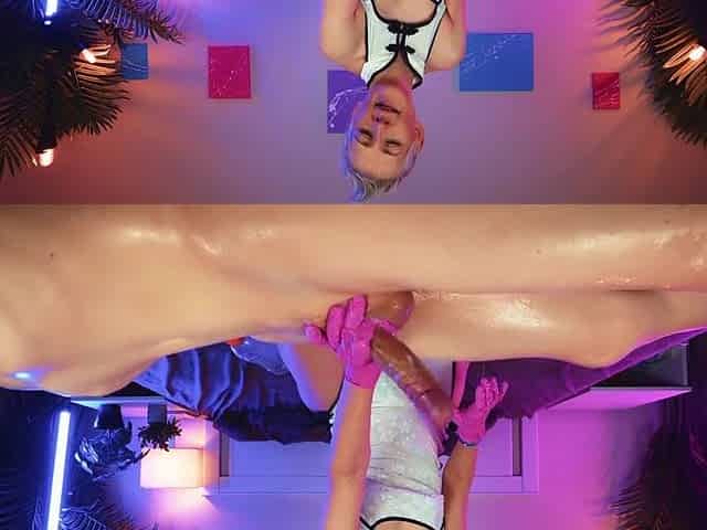Dominant goddess uses her forearms and feet to pleasure my man meat