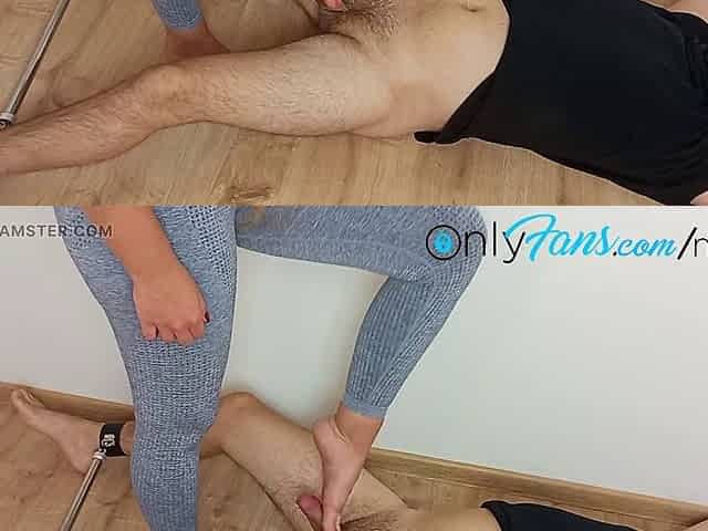 Bare feet cock massage and footjob from a nude blonde
