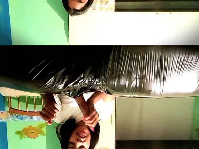 Merciless Cock Milking (tight Shiny Red Plastic Mummificaton and Remote Anal Stimulation)