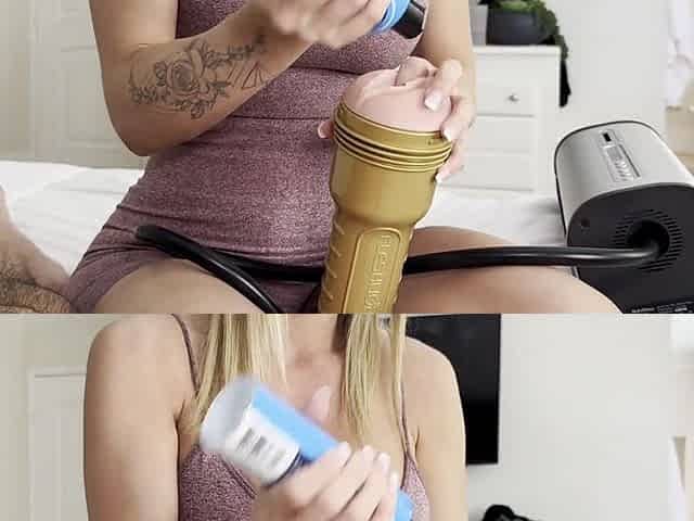 Femdom wang milking with a sex toy - Hand free cum from Large Titties mastix