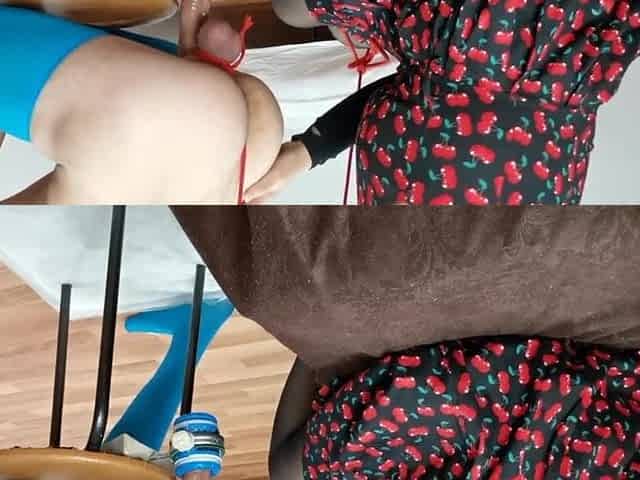 The Ebony Dominatrix-bitch Day 7 - knob stuck between chair to get a hard milking - FEMDOM