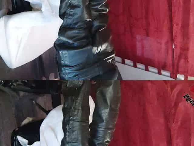 Leather mistress in leather outfit: zippering fetish