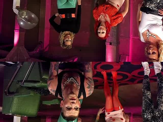 Rough foursome with three dominant ladies and one submissive guy