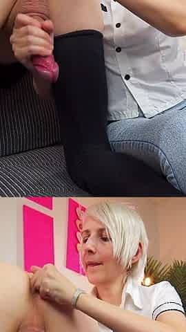 Excellent close up tugjob, milking and draining balls from Mastix Sexy Lips with 4 ruined orgasms