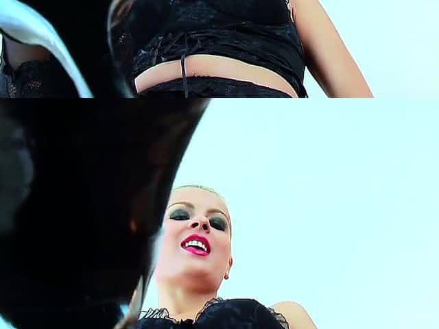 Mistress in all black lingerie makes her little slave moan sweetly
