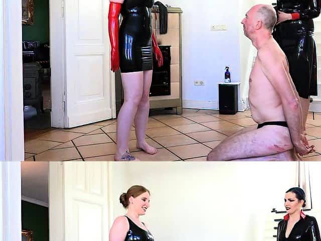 Leather-clad Dominatrixes Restrain And Punish Male Slave In Bdsm Chamber