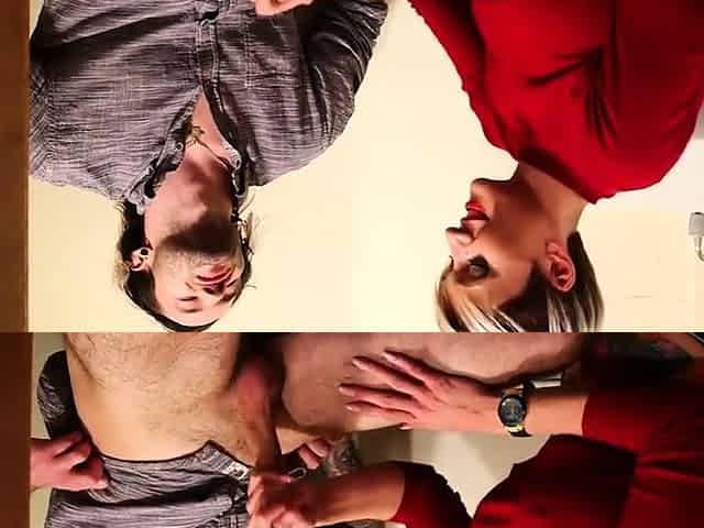 CFNM toilet femdom jerks BFs cock