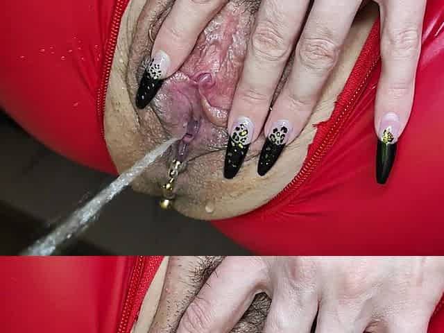 Clitpierced femdom pees all over toilet slave