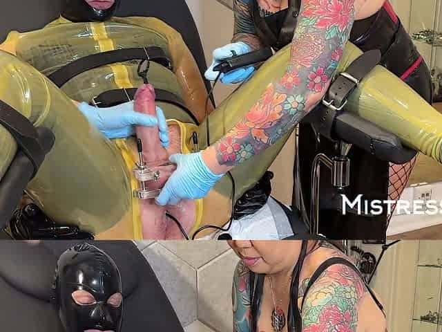 Cbt Ball Crushing And Double Silicone Sounding With Madame Li Ying And Our Rubber Gimp
