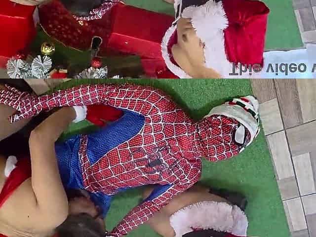 WHAT A CAPTIVATING SQUIRT! 2 marvelous stepsisters have sex with Spider-Chap at Christmas