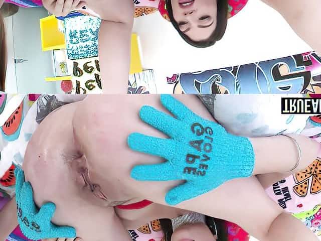 Gaping anal play with two beautiful girls and ATM sluts
