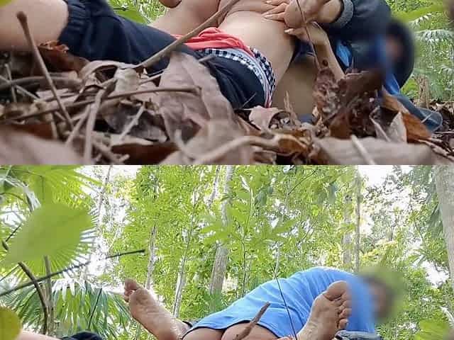 Risky public jungle fuck with creampie for petite teen