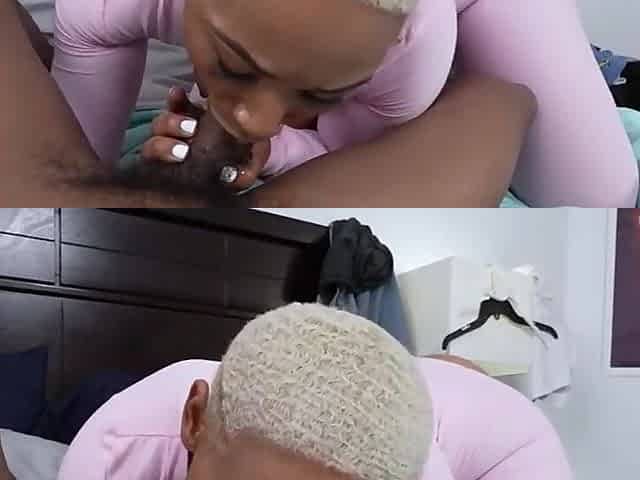 Slutty and filthy black woman gets induced on her bed