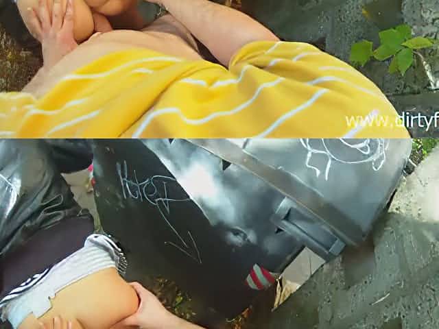 Skinny Blue Eyes Schoolgirl Fuck Homeless filthy Guy with Big Dick at empty house