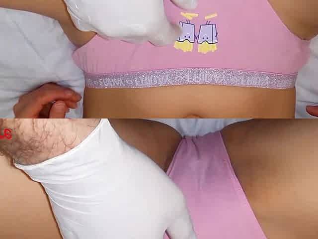 Brunette anal fists her petite stepsister as shes fingered