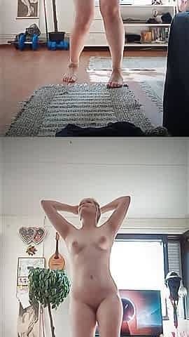 Milly finishes breakfast and strips naked