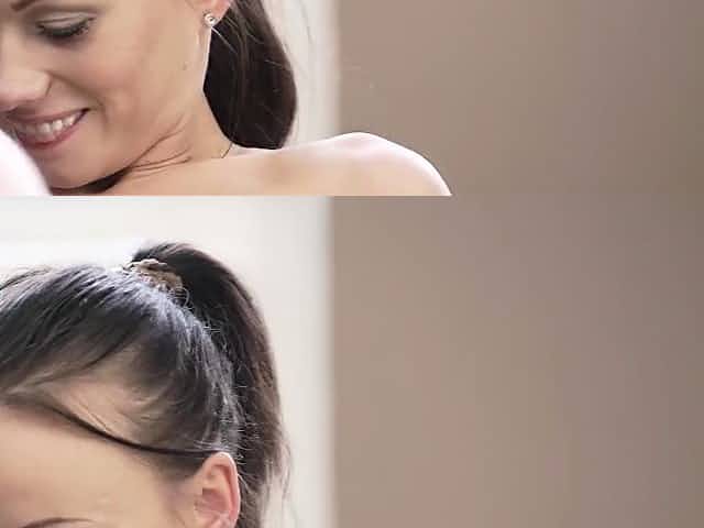 Slim beauty gets her first lesbian experience on agents couch