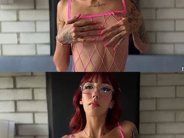 Heavily tattooed Anuskatzz stretches her bum