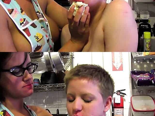First time young clerk seduced in a bakery by the lesbian boss and fucked behind the counter
