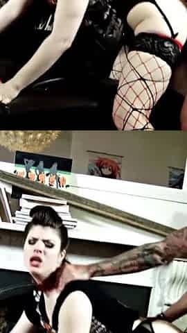 kittie en lingerie de pute suce empallée sur un gode xxl