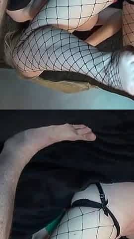 I cummed in fishnet shine sock