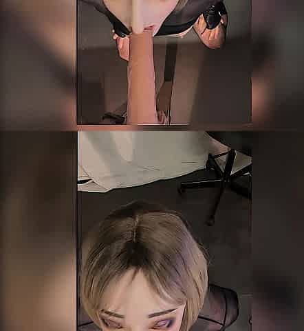 POV penis sucking, deepthroat Blond in Boots, fishnets, corset and red pvc dress