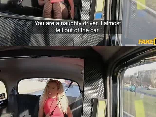 Blonde Lesbians In Fishnets Licking In Taxi