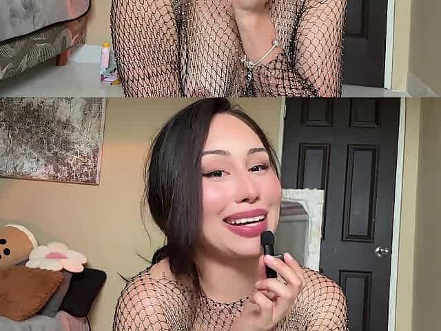Asian Intense Masturbation with Butt Plug and Vibrator, Fishnet Stockings Fantasy